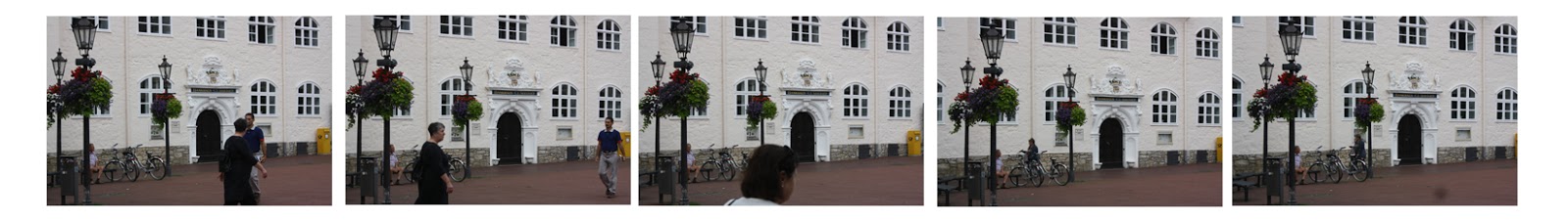 1. Reihenaufnahmen gemacht, hier 5 in Folge, mit immer dazwischenlaufenden Personen