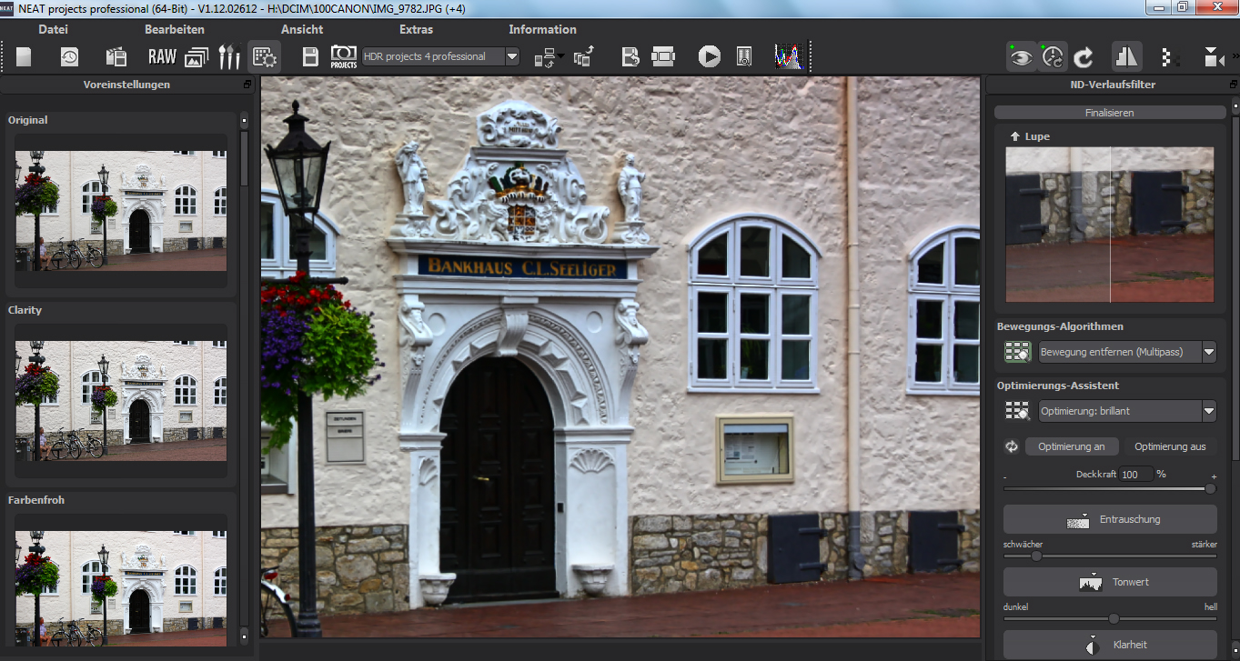 Für alle, die sich bislang nicht an diese Art der Bildbearbeitung wagten, NEAT projects ist einfach zu bedienen und dank der Automatik benötigt man nur das übliche Grundwissen. Wer aber Erfahrung hat, dem stehen viele weitere funktionale Tools zur Verfügung, auch manuel in die weitere Bildbearbeit einzusteigen.